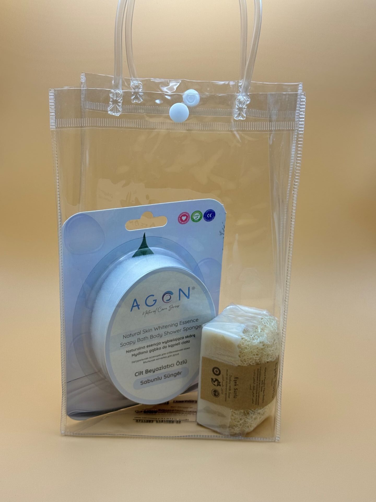 Набор для выравнивания тона кожи с отбеливающей губкой и мылом с ослиным молоком. Мягкий ежедневный уход.